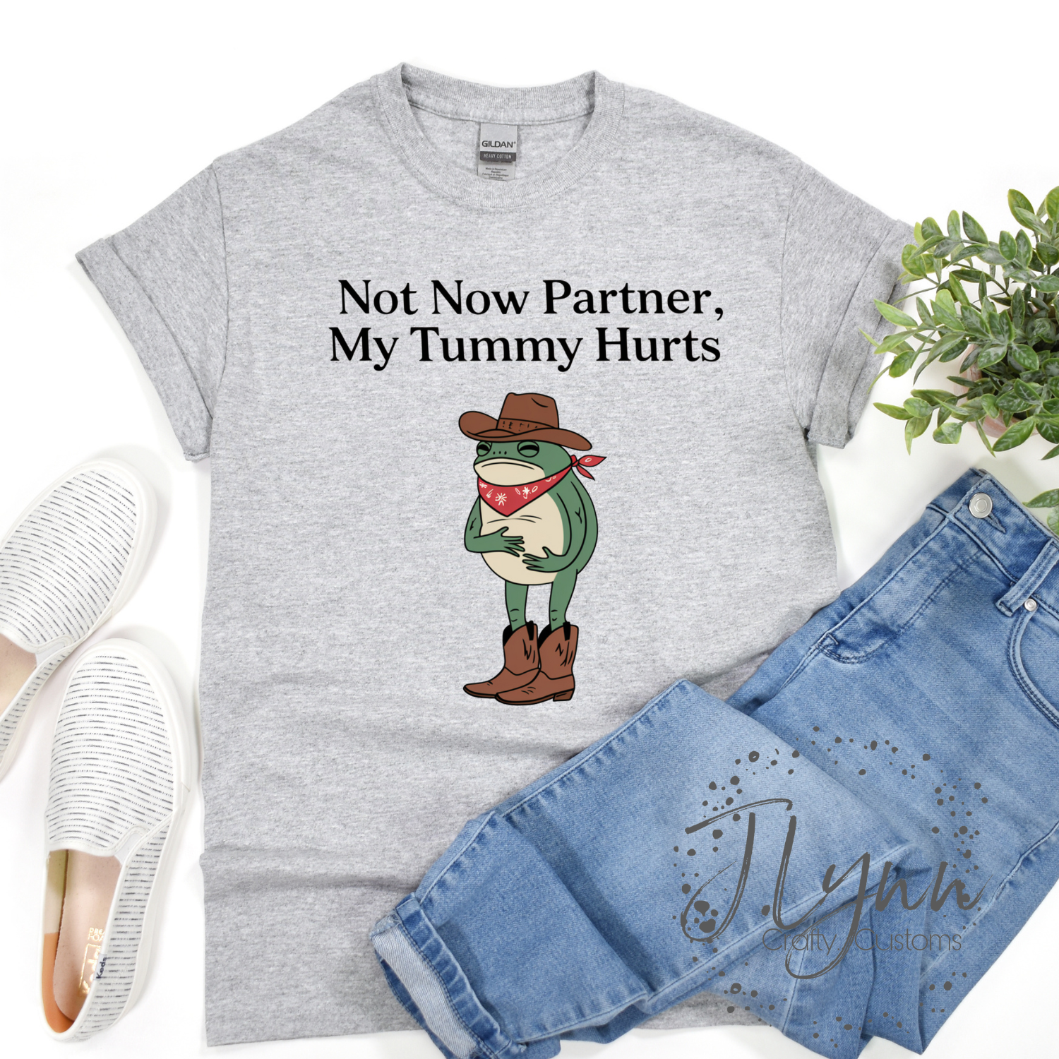 Show off your playful side with our Not Now Partner T-Shirt! Featuring a quirky design of an alligator and the phrase 'Not Now Partner My Tummy Hurts', this shirt is sure to bring laughter to any room. Perfect for adding some humor to your wardrobe. Don't miss out, order now!